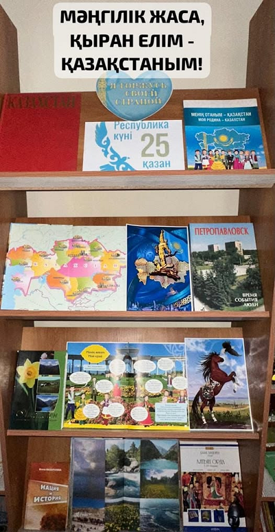 Бүгін мектеп кітапханасында Республика күніне орай "Мәңгілік жаса, қыран елім - Қазақстаным! атты кітап көрмесі ұйымдастырылды. Мақсаты: Оқушылар мен оқырмандарға Қазақстан Республикасының мемлекеттік мәртебесін, Тәуелсіздік тарихын, ұлттық құндылықтарды таныстыру, отансүйгіштікке, елжандылыққа тәрбиелеу және тарихи-мәдени мұраны насихаттау.
