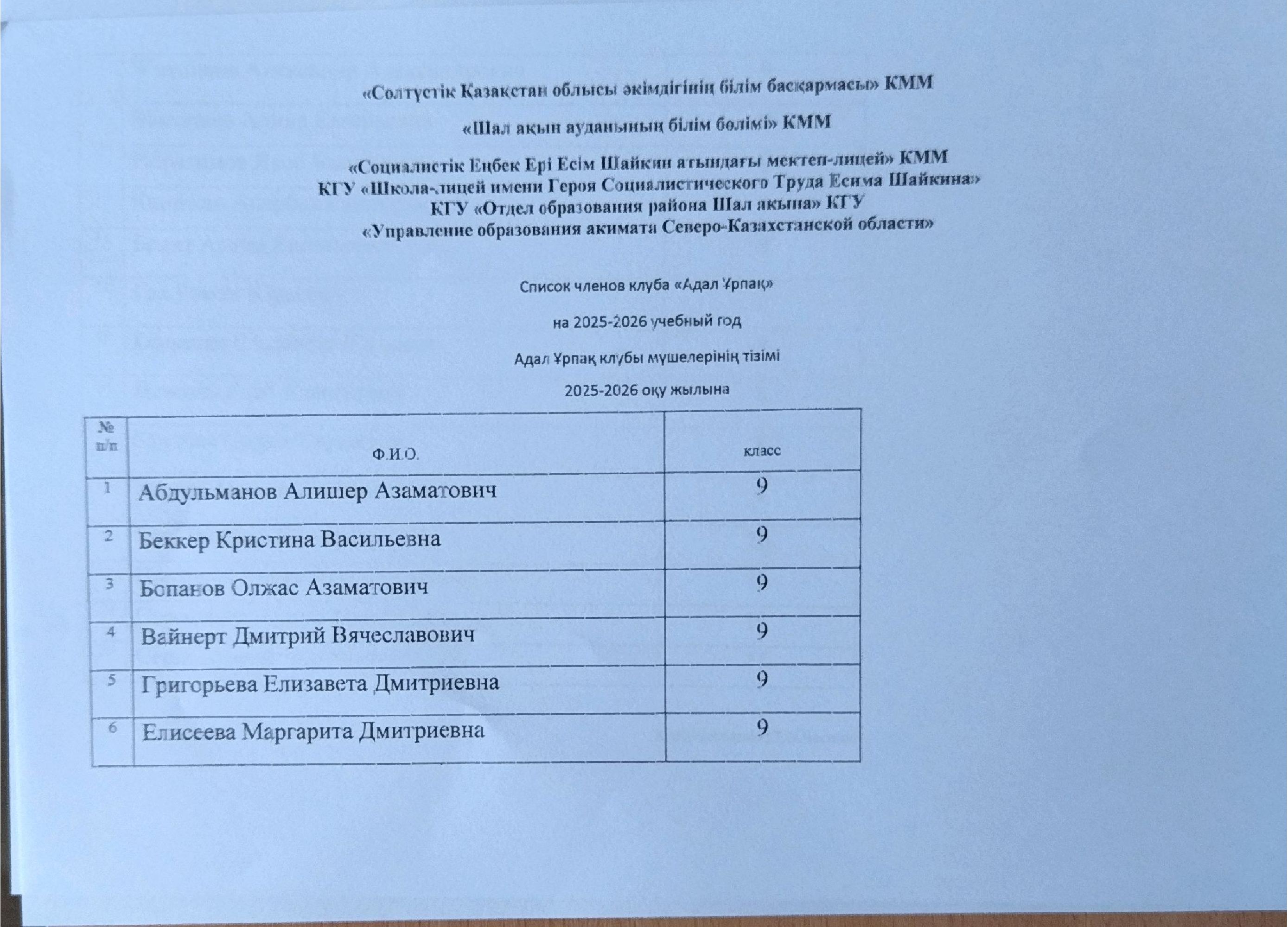 Члены клуба "Адал Ұрпақ"