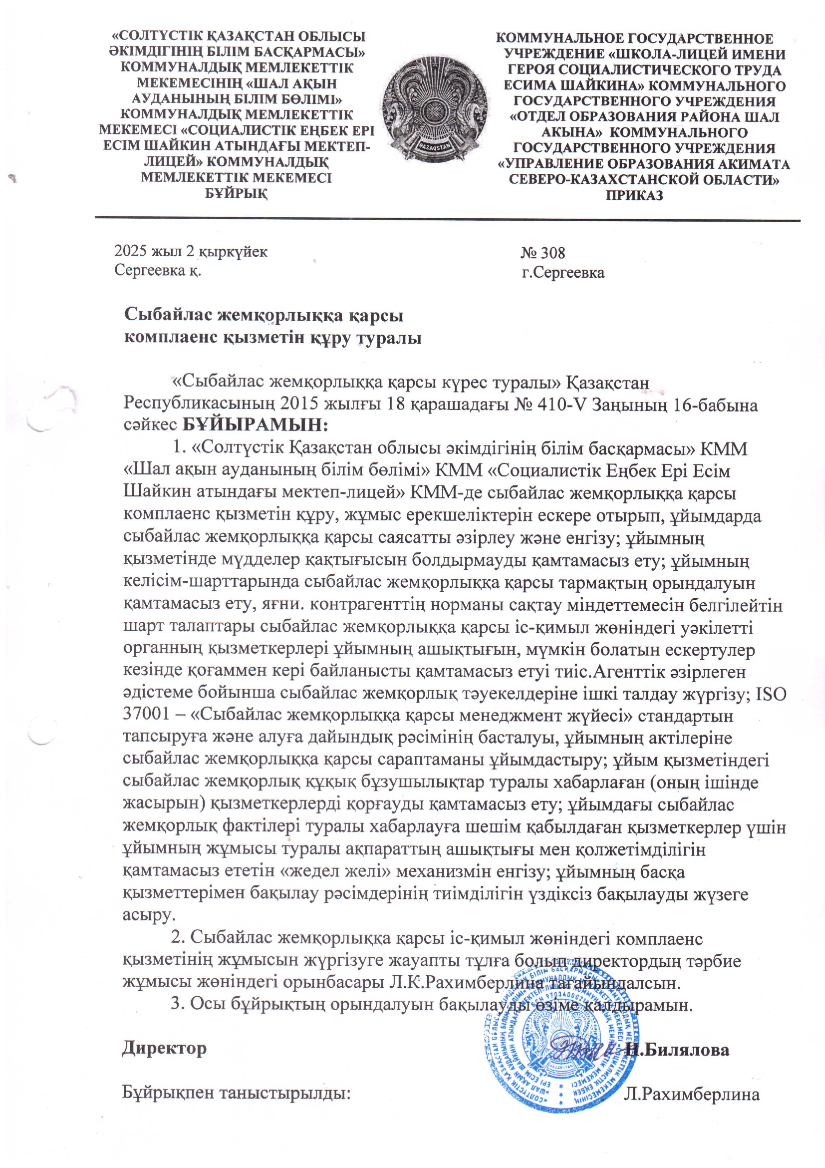 Сыбайлас жемқорлыққа қарсы комплаенс-қызметті құру туралы