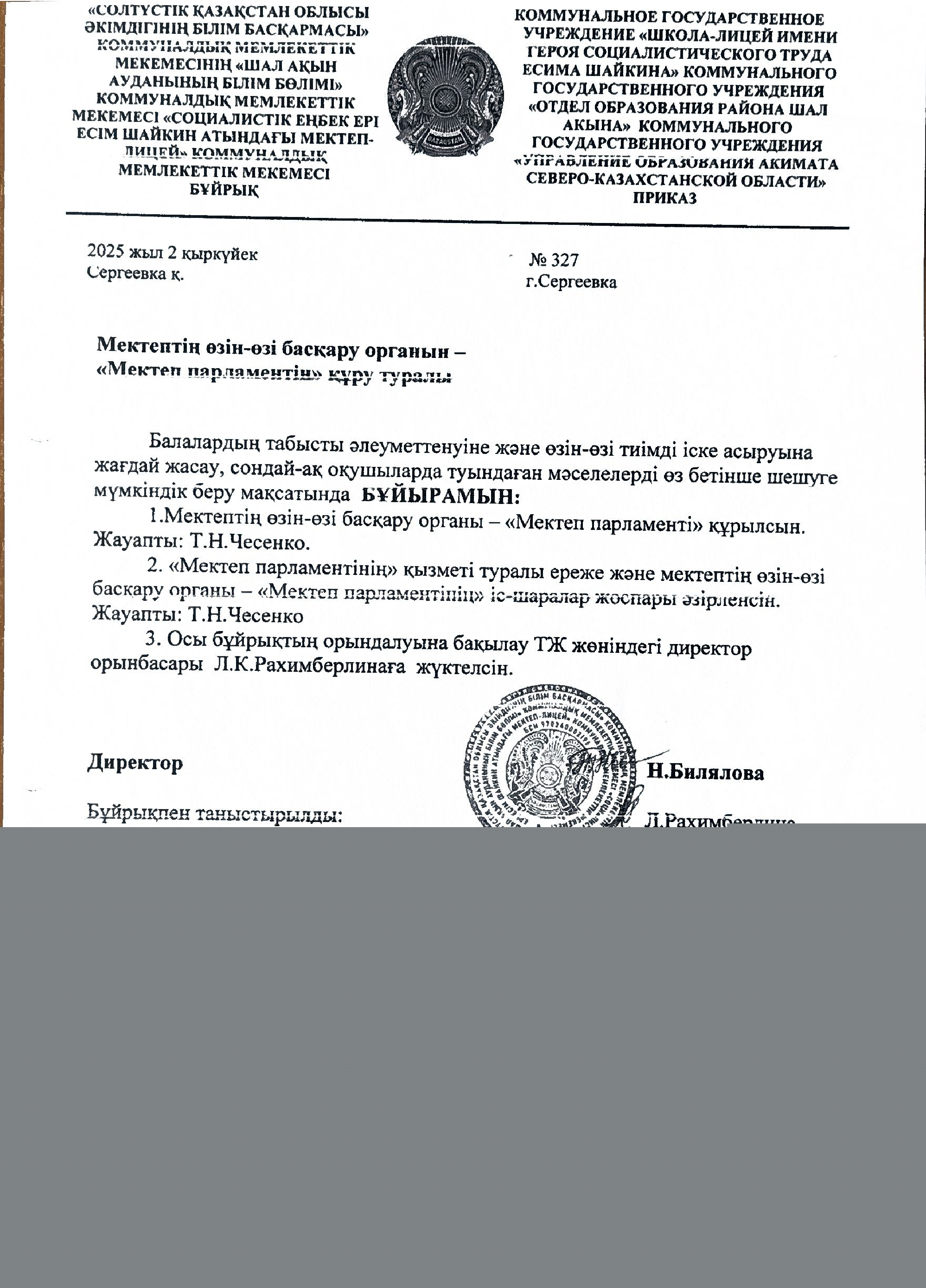 "Мектеп Парламенті"мектептің өзін-өзі басқару органын құру туралы