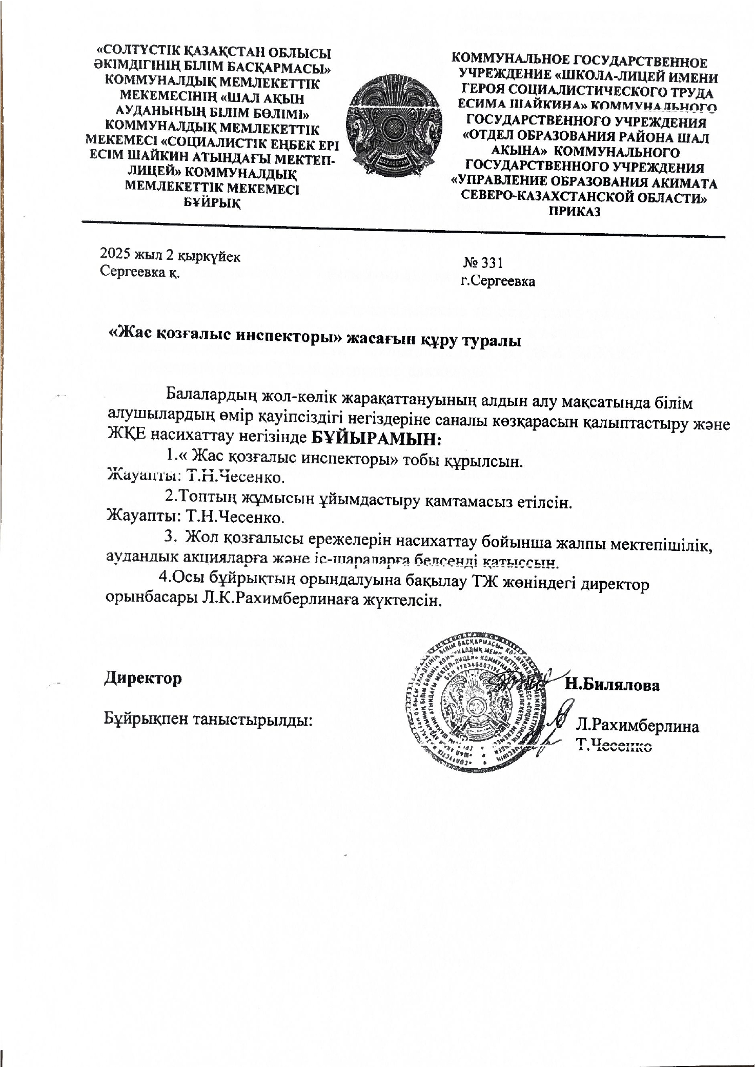 "Жас қозғалыс инспекторы" жасағын құру туралы