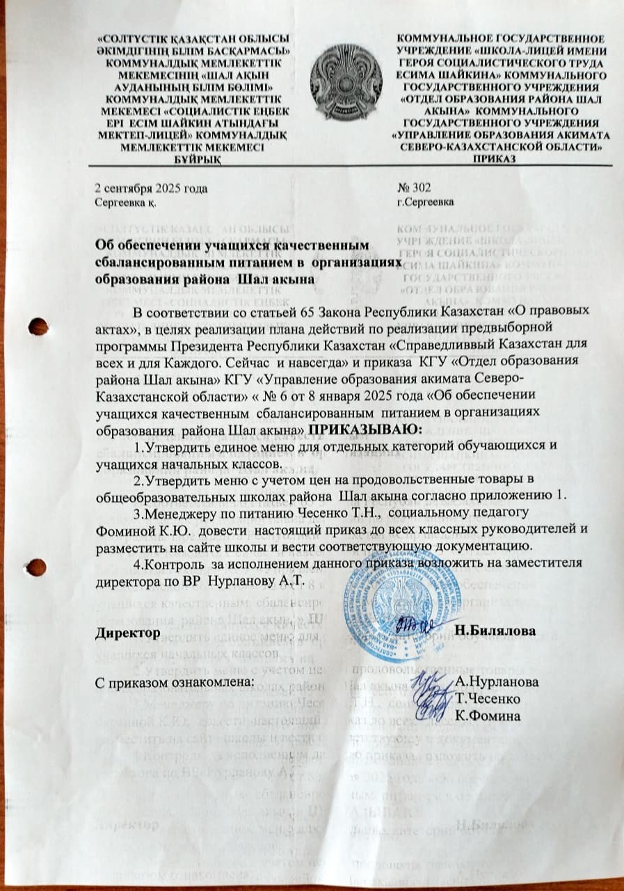 Об обеспечении учащихся качественным сбалансированным питание в школе
