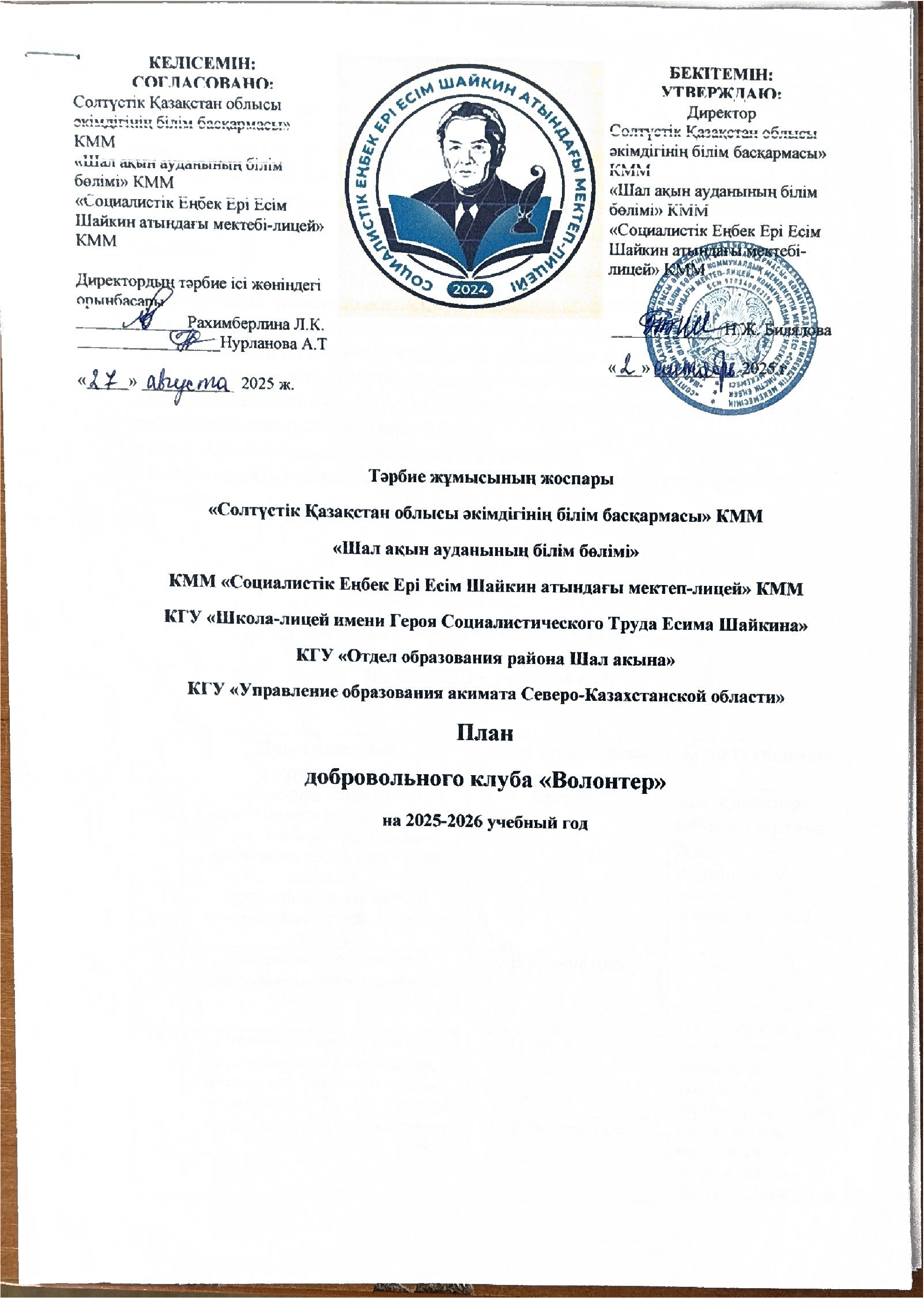 КОММУНАЛЬНОЕ ГОСУДАРСТВЕННОЕ УЧРЕЖДЕНИЕ « ШКОЛА-ЛИЦЕЙ ИМЕНИ ГЕРОЯ СОЦИАЛИСТИЧЕСКОГО ТРУДА ЕСИМА ШАЙКИНА» КОММУНАЛЬНОГО ГОСУДАРСТВЕННОГО УЧРЕЖДЕНИЯ «ОТДЕЛ ОБРАЗОВАНИЯ РАЙОНА ШАЛ АКЫНА» КОММУНАЛЬНОГО ГОСУДАРСТВЕННОГО УЧРЕЖДЕНИЯ «УПРАВЛЕНИЕ ОБРАЗОВАНИЯ АКИМАТА СЕВЕРО-КАЗАХСТАНСКОЙ ОБЛАСТИ»
