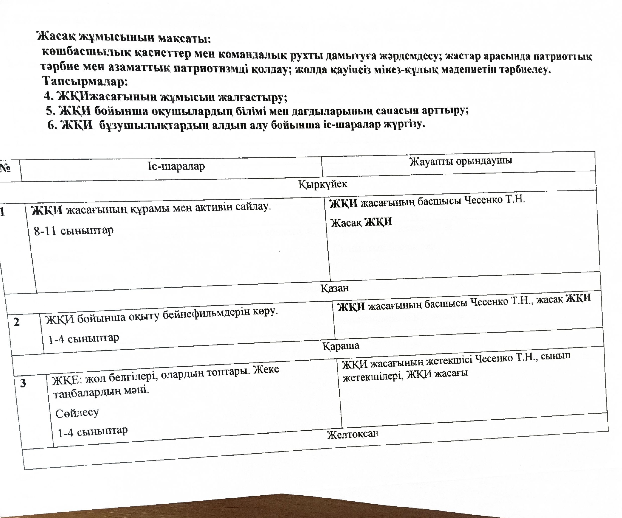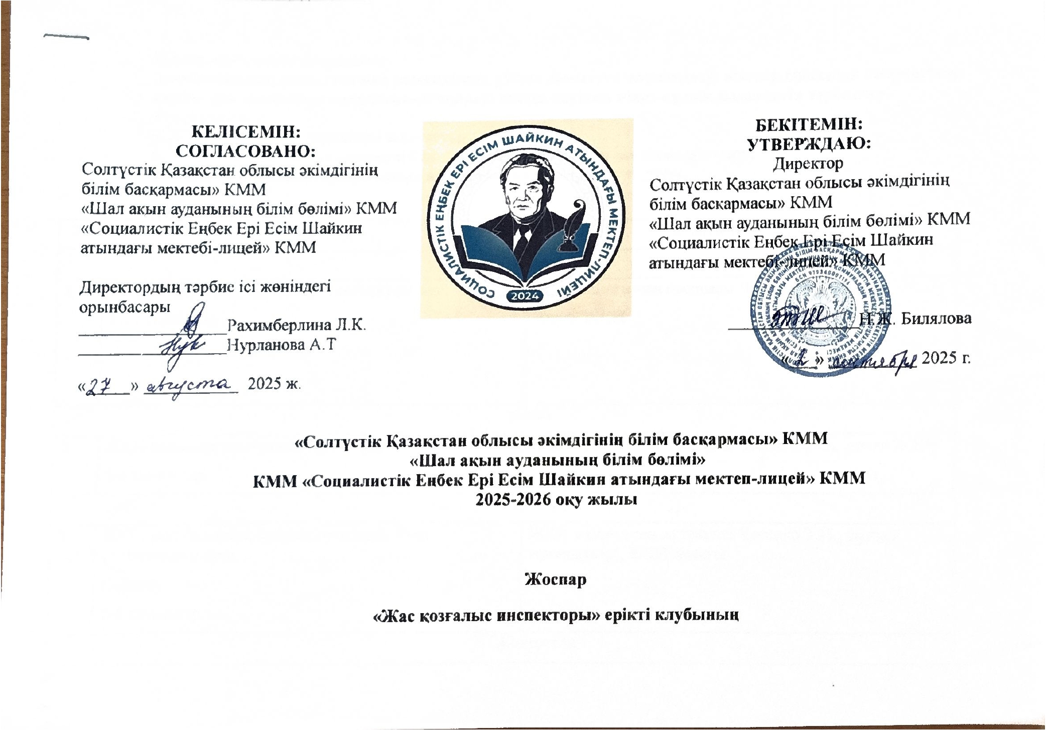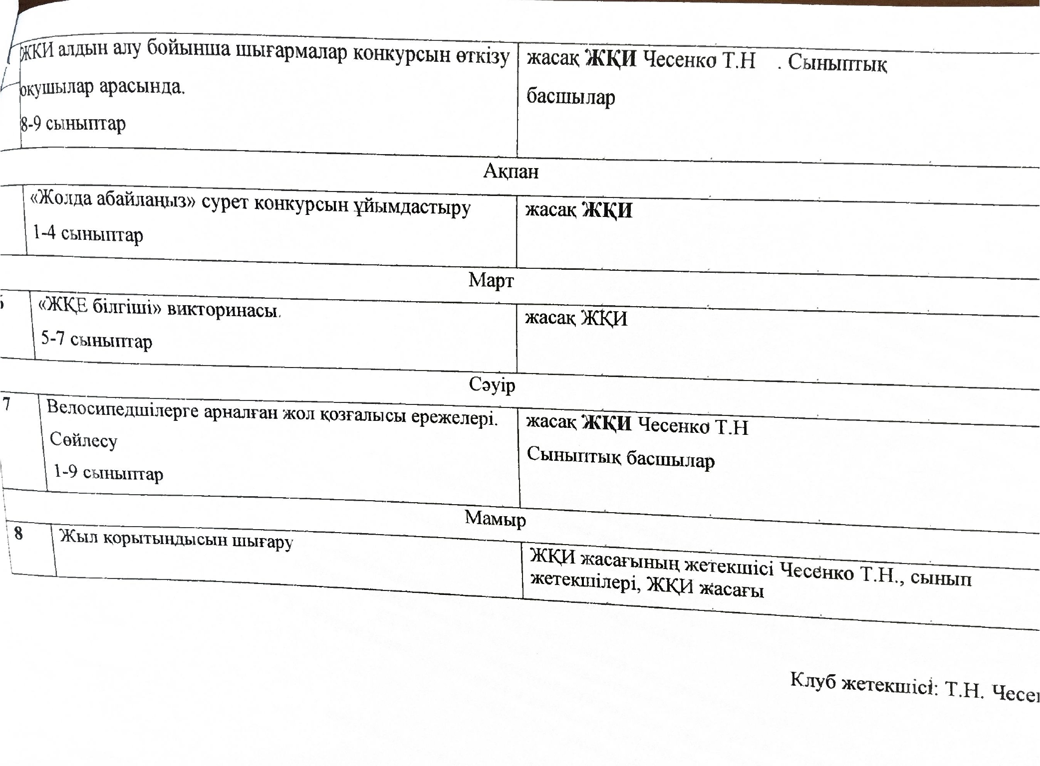 "Жас қозғалыс инспекторы" ерікті мектеп клубының жұмыс жоспары