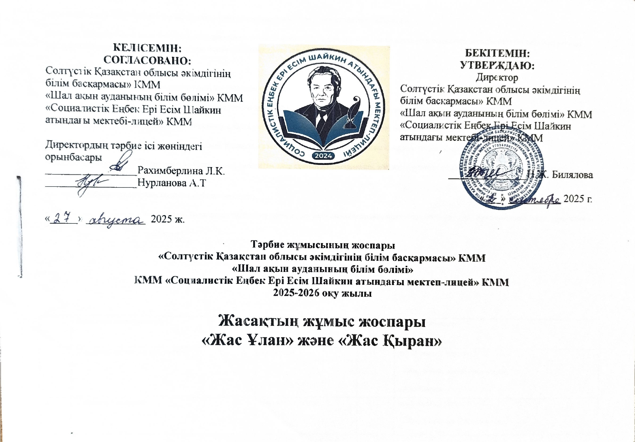 «СОЛТҮСТІК ҚАЗАҚСТАН ОБЛЫСЫ ӘКІМДІГІНІҢ БІЛІМ БАСҚАРМАСЫ» КОММУНАЛДЫҚ МЕМЛЕКЕТТІК МЕКЕМЕСІНІҢ «ШАЛ АҚЫН АУДАНЫНЫҢ БІЛІМ БӨЛІМІ» КОММУНАЛДЫҚ МЕМЛЕКЕТТІК МЕКЕМЕСІ «СОЦИАЛИСТІК ЕҢБЕК ЕРІ ЕСІМ ШАЙКИН АТЫНДАҒЫ МЕКТЕП-ЛИЦЕЙ» КОММУНАЛДЫҚ МЕМЛЕКЕТТІК МЕКЕМЕСІ