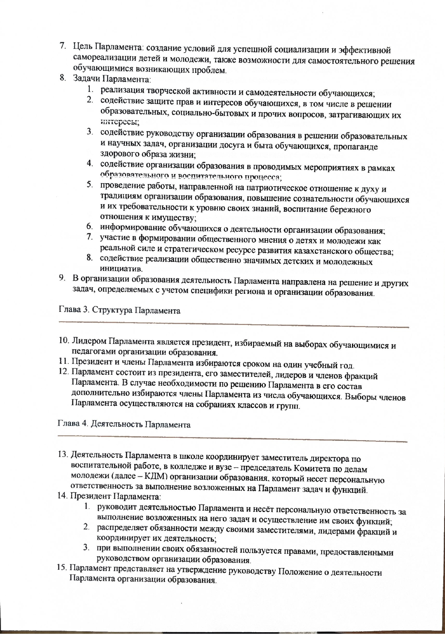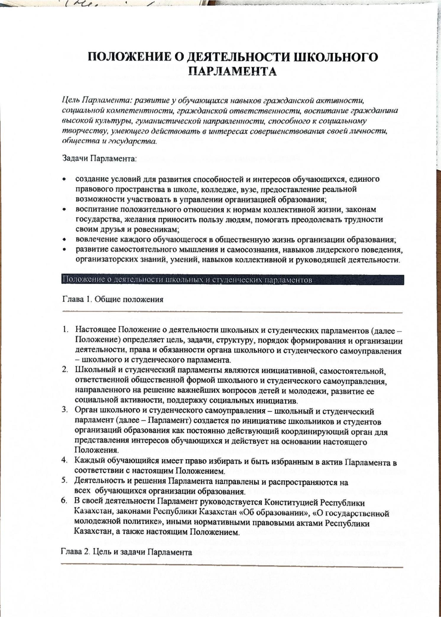 Положение о деятельности ученического самоуправления "Школьный Парламент"