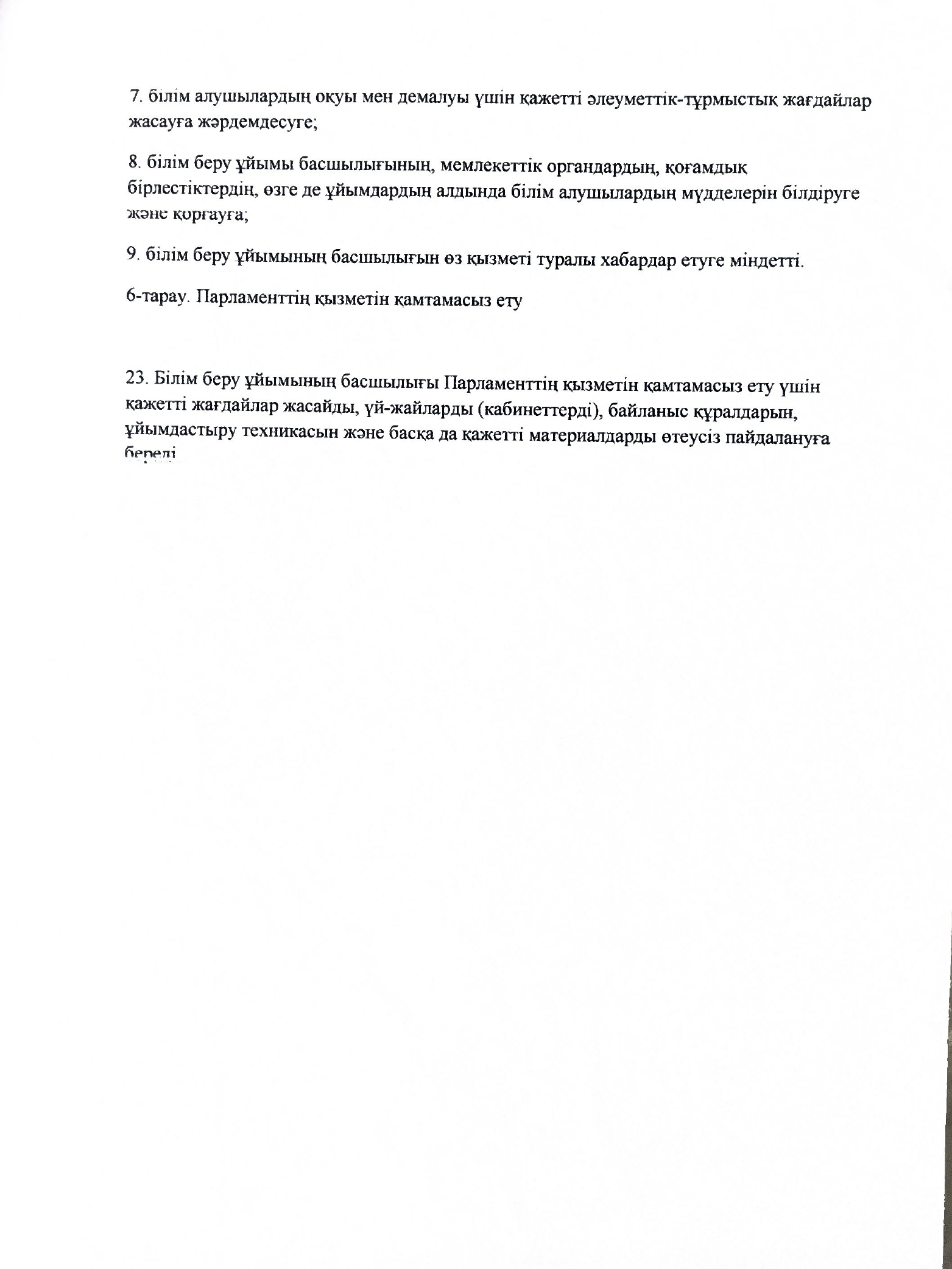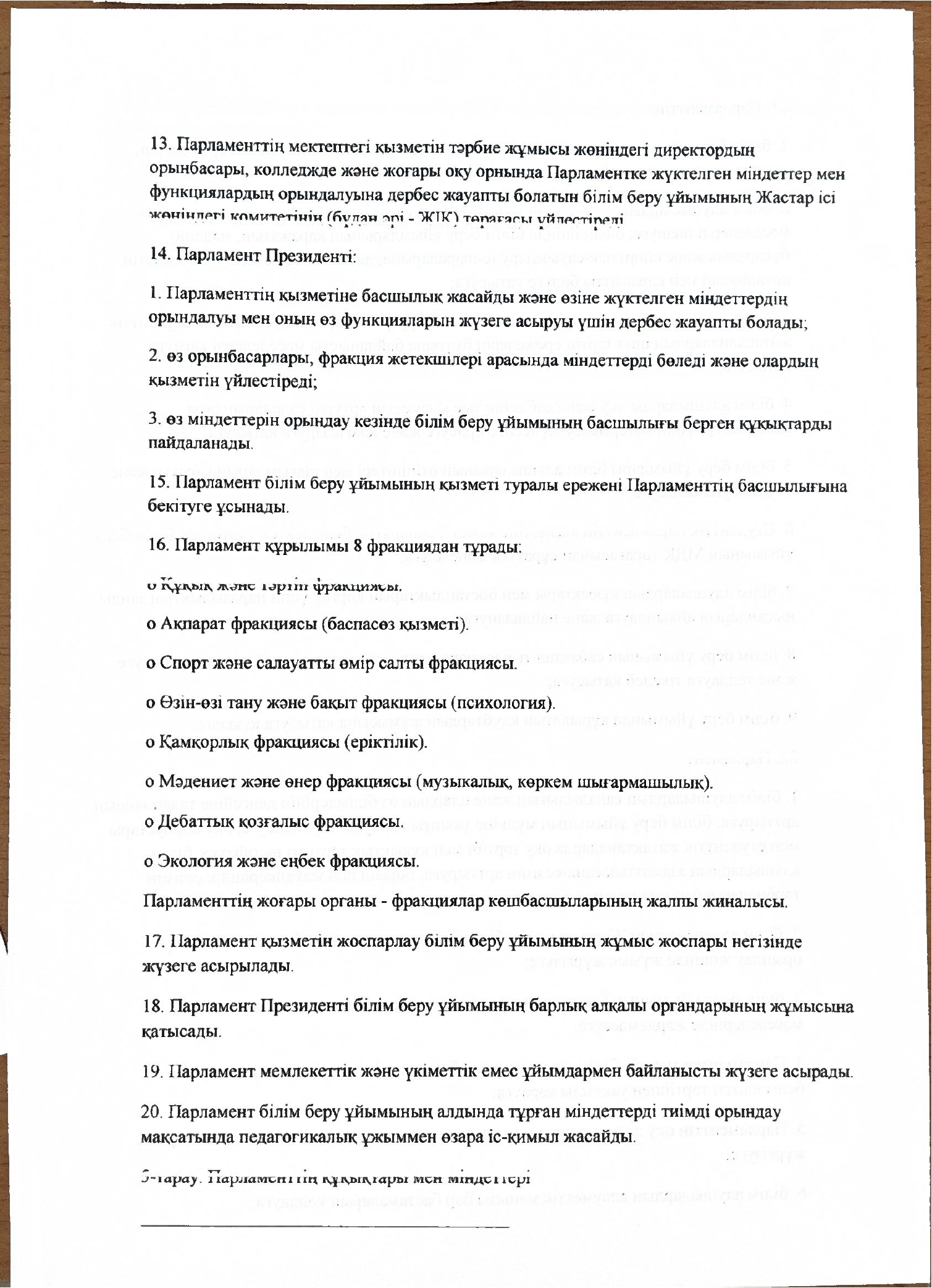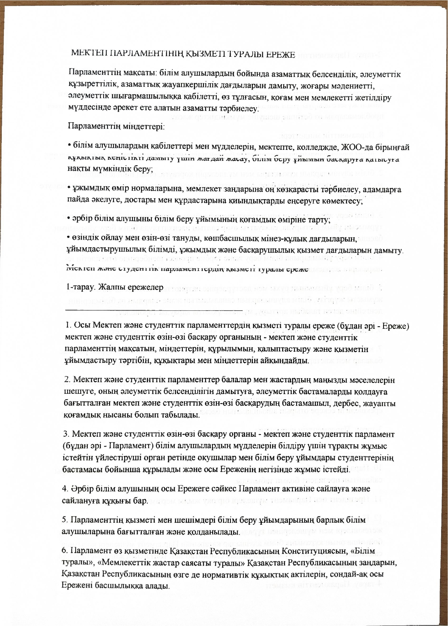 "Мектеп Парламенті"оқушылардың өзін-өзі басқару қызметі туралы ереже